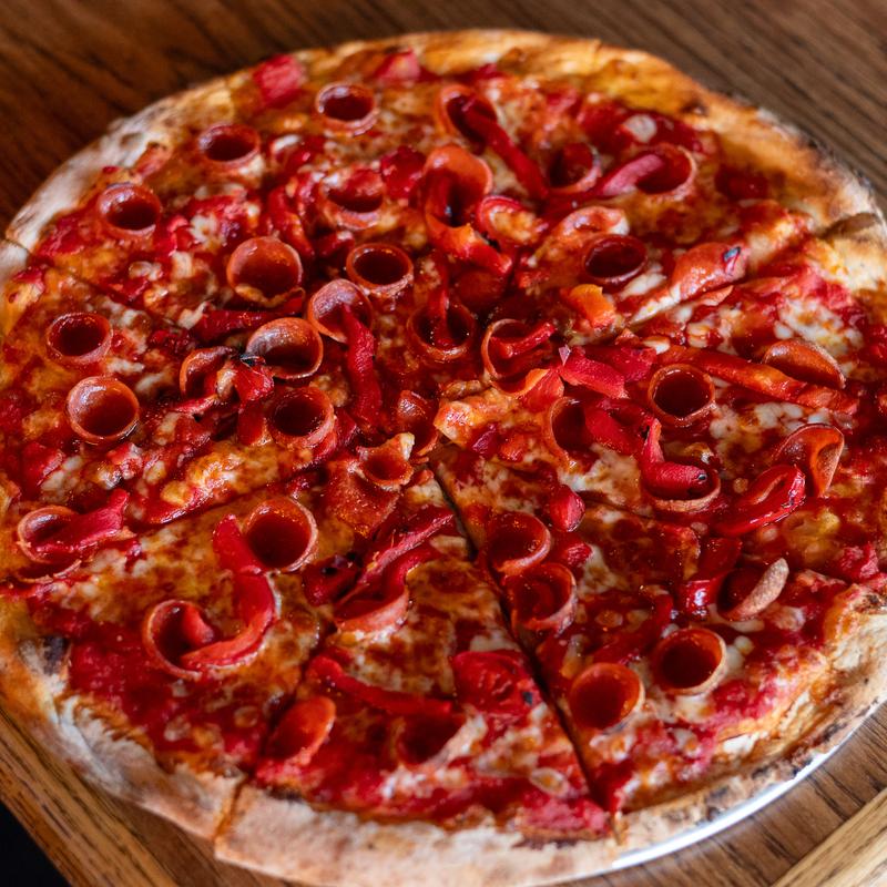 A perfect balance of sweet, heat, and savory. Our house sauce and melted mozzarella are topped with pepperoni and roasted red peppers, then finished with a drizzle of Mike’s Hot Honey for a bold, sweet-and-spicy kick.